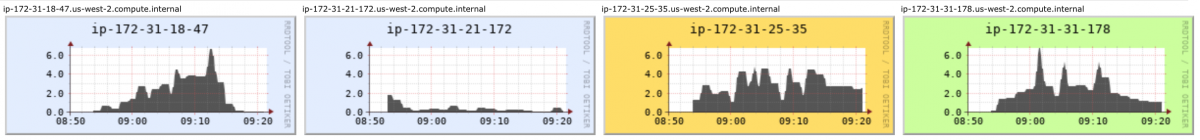 Figure 3. CPU Load for the Map Reduce cluster is bursty and less than